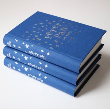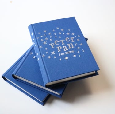Redesign and formatting of Peter Pan by J.M. Barrie. The book was formatted using InDesign, and the cover was designed first by hand and then using Illustrator focusing on central themes such as childhood, time, and magic to guide our creative choices. Printed and bound in Spain by Sánchez Álamo Artesanos S.L.