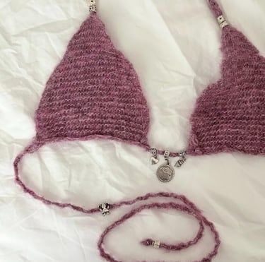 I took up knitting a couple of years ago I took up as a hobby. I have mostly made accessories for myself and friends. Some examples include scarves, headbands, and a bikini adorned with vintage charms I found at flea markets while traveling around Europe.