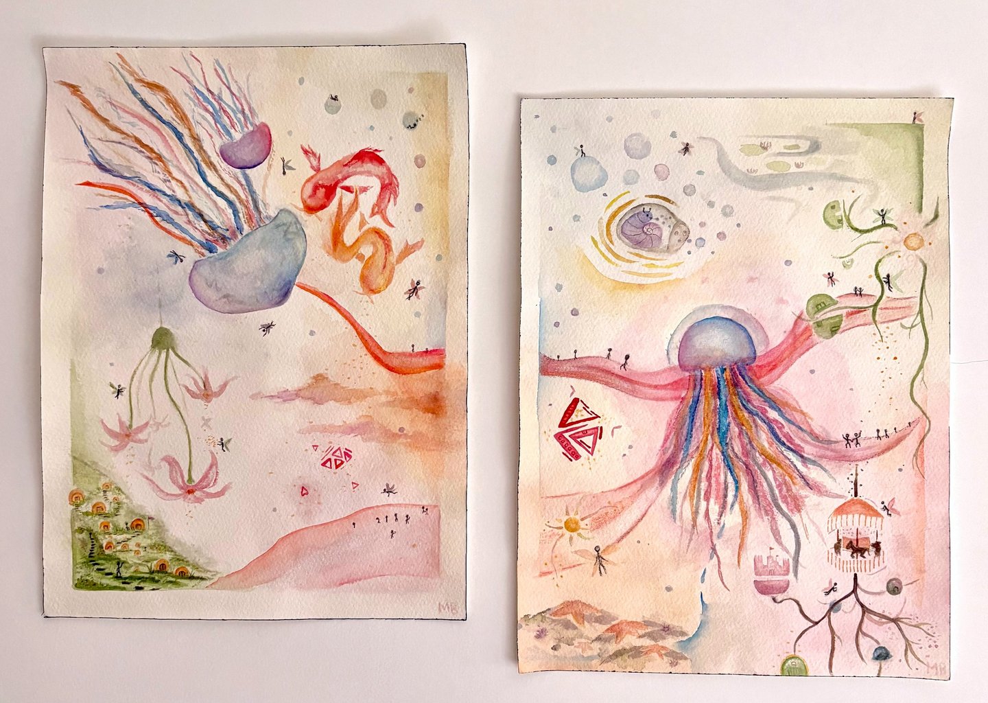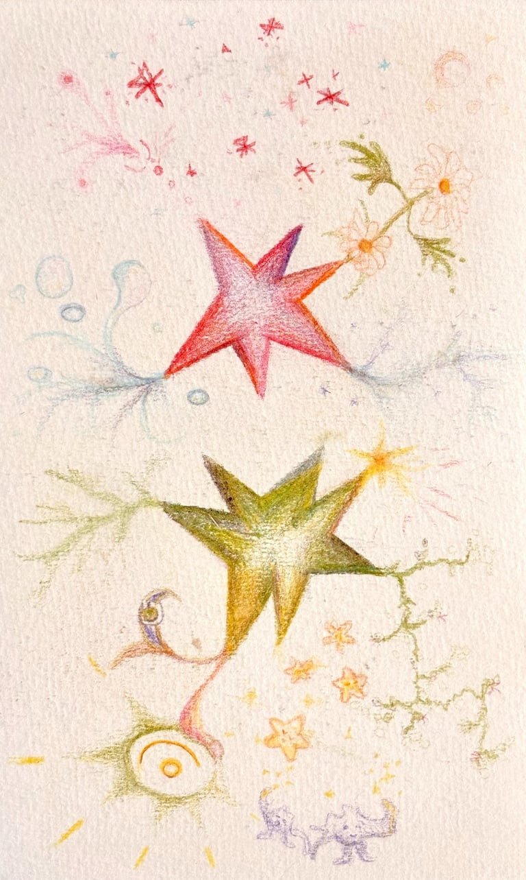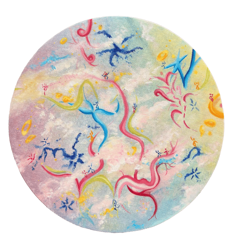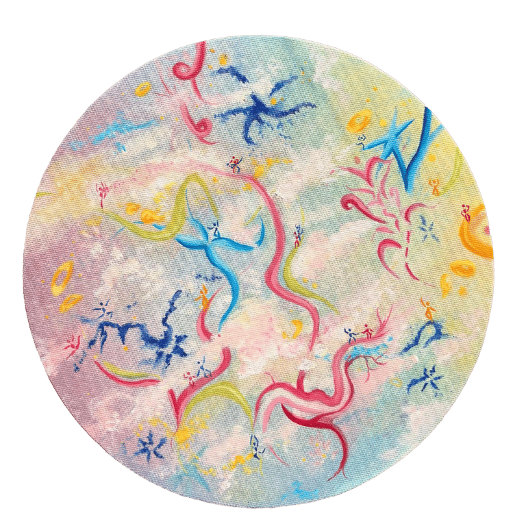 I now use observation as a tool to pull inspiration, rather than subject, from the world around me. Color theory, patterns, geometric and biological forms, plants and animals. My work emphasizes the synergy between divine spirit and natural order. As humans, our time on earth is short-lived and ever-changing. While we are insignificant in the grandiose of the universe, we also have a huge capacity for growth, collaboration, and connection. Resolving the pursuit of love and happiness by finding it within ourselves is essential in a world crazed by greed, violence, and tragedy. My experimentation with abstract art has become not only a form of ephemeral self-expression but a way to bring forth love and magic into the physical realm.
