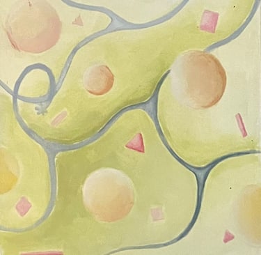 Exploring the magic of everyday life through color, imagination, and movement, my exploration into abstract work was challenging but extremely freeing. As a young artist classically trained in observation, I fixated on replicating the tangible world in photorealism. While I excelled technically, I judged myself based on my ability to copy rather than create.
