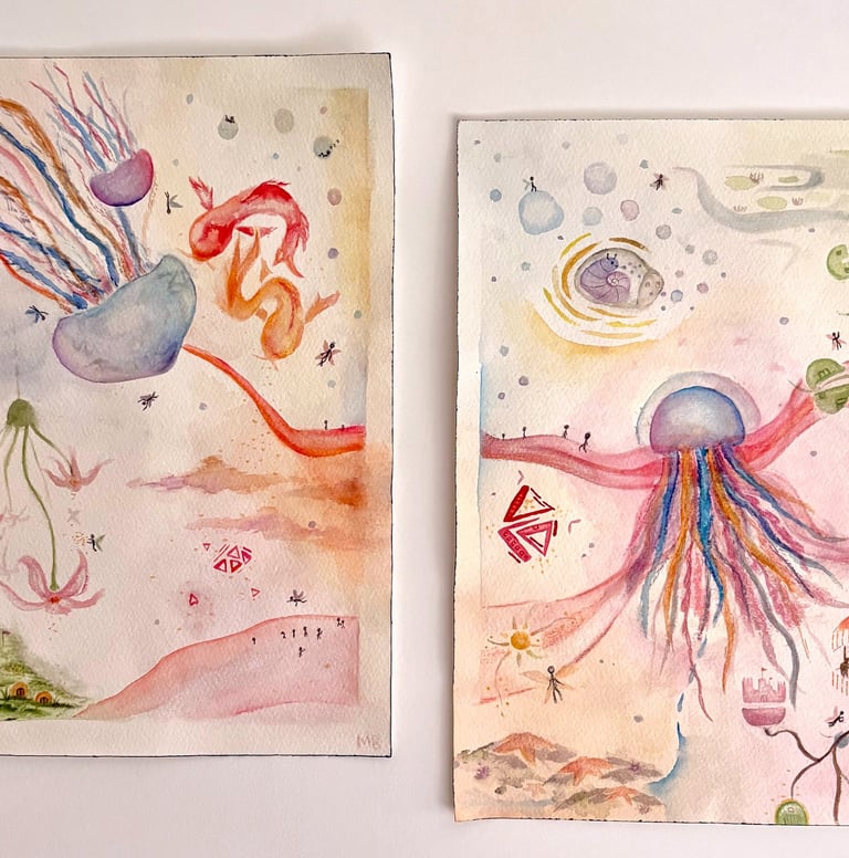 Exploring the magic of everyday life through imagination, movement, and color - transitioning into abstract work was challenging but extremely freeing. As a young artist classically trained in observation, I fixated on replicating the tangible in photorealism. While I excelled technically, I often judged myself based on my ability to copy rather than create.